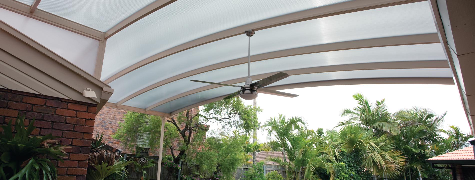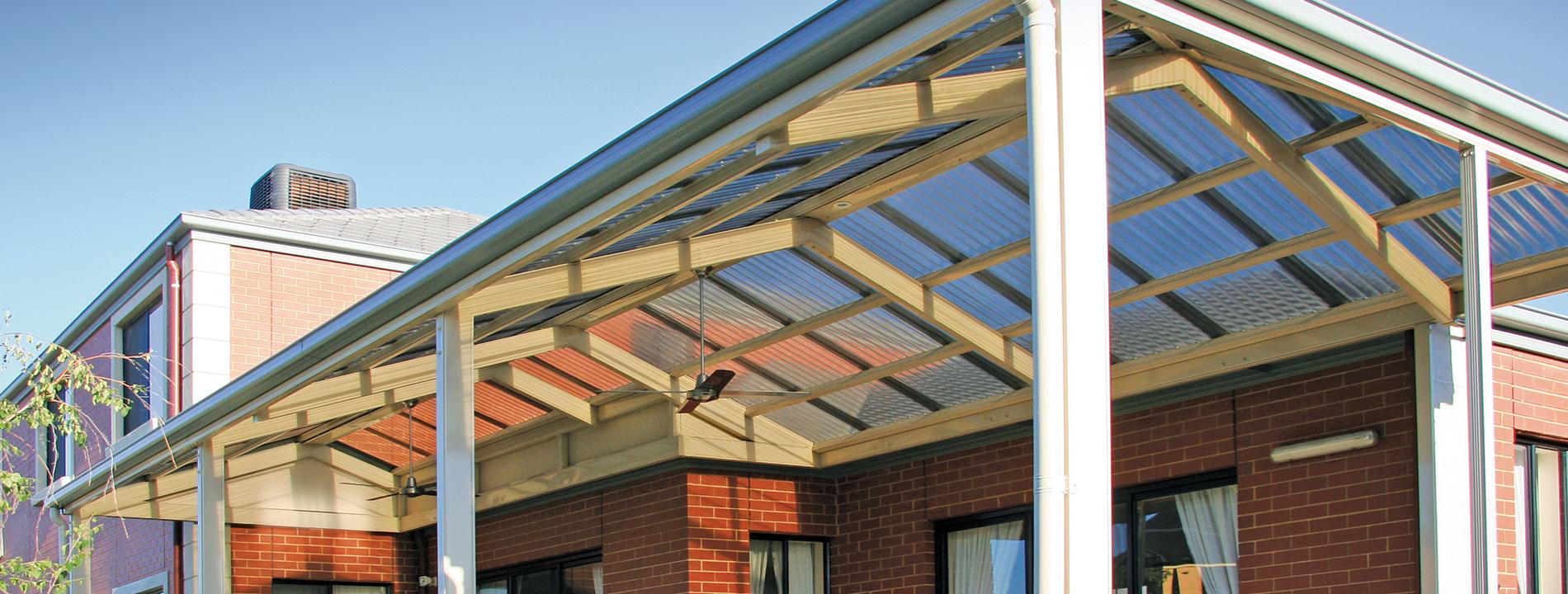 Clear or tinted polycarbonate sheets for semi-covered outdoor living spaces.